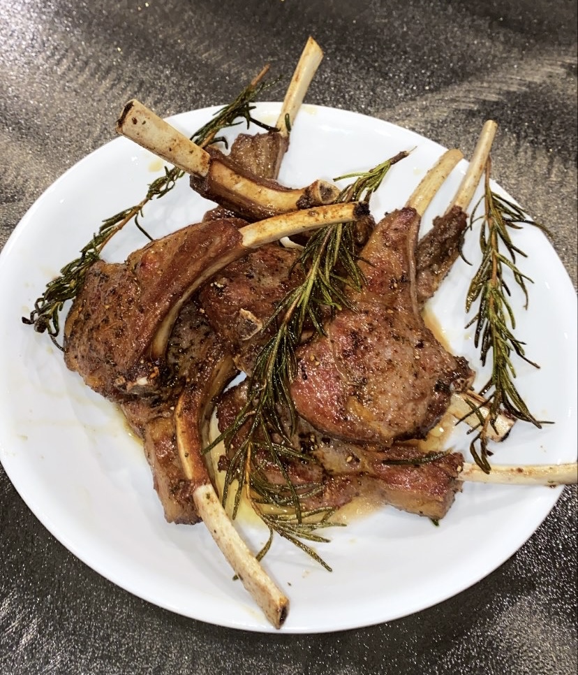 - Arrange lamb chops in pot (can do in batches) and add in rosemary. Do not overcrowd the pan.