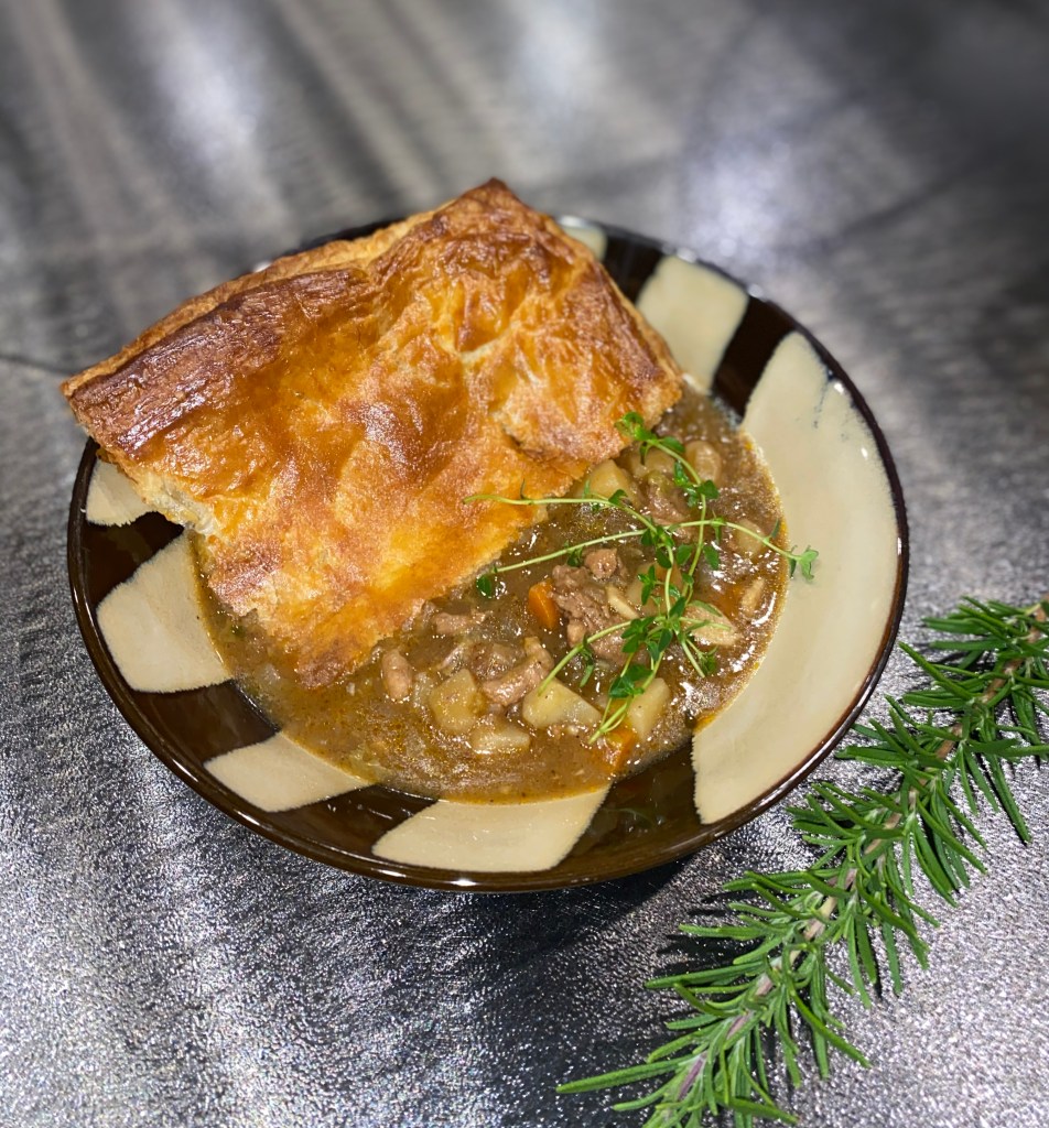 - Place puff pastry on top of the pot. Place in oven for 20 minutes at 400 degrees.